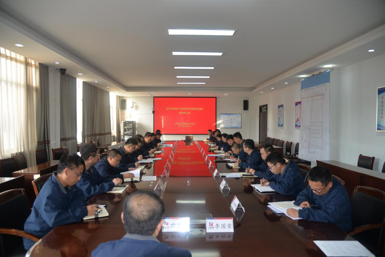 10月26日,豹子溝煤業公司黨總支舉行10月份黨員干部政治理論集體學習。公司領導班子成員、各部室隊組負責人、副科級管理人員參加。黨總支書記、董事長蘇松嶸主持會議。